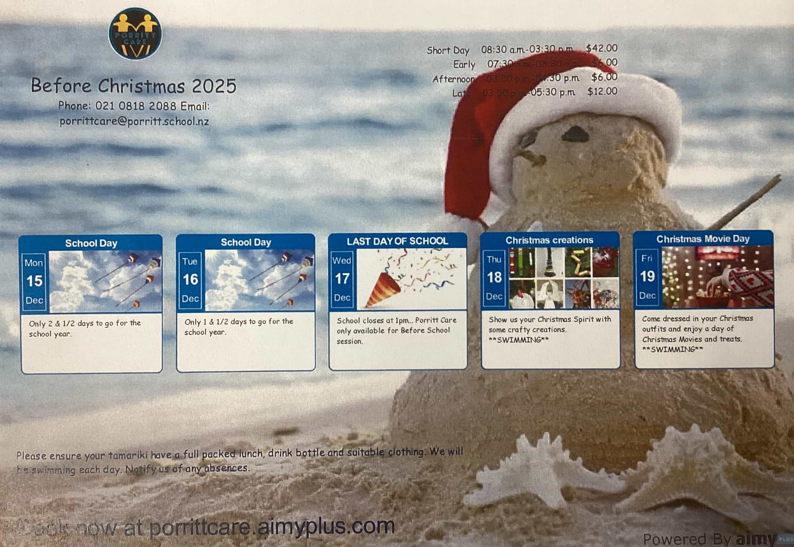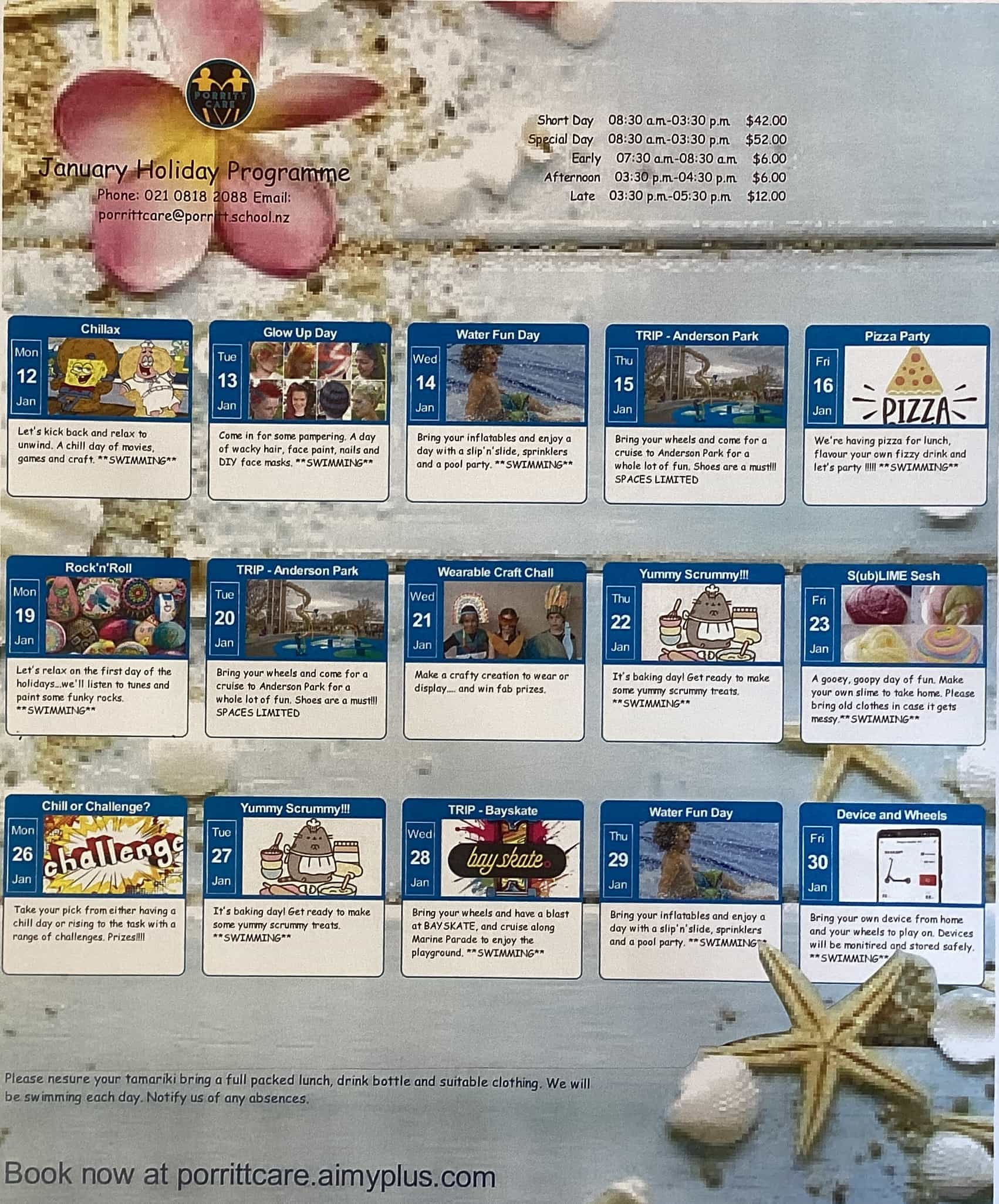 When first enrolling, please contact PorrittCare Manager Katie McPherson to confirm your enrolment at porrittcare@porritt.school.nz.